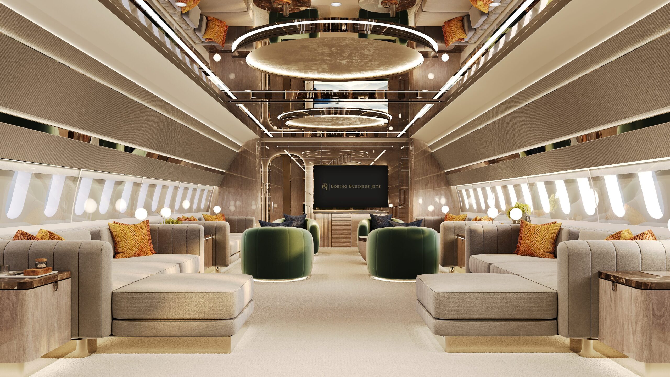 From the outset, Natalie Rodríguez Luxury Design and Boeing Business Jets envisioned an interior that feels grounded and intuitive, encouraging a more considered journey. The Main Lounge is arranged in a harmonious, symmetrical layout centred on a luminous circular motif that recurs throughout the cabin as a grounding symbol of calm. Rich materials, softly reflective finishes and moody lighting evoke the ambience of a refined cocktail lounge in early afternoon, where daylight filters gently and time appears to slow.