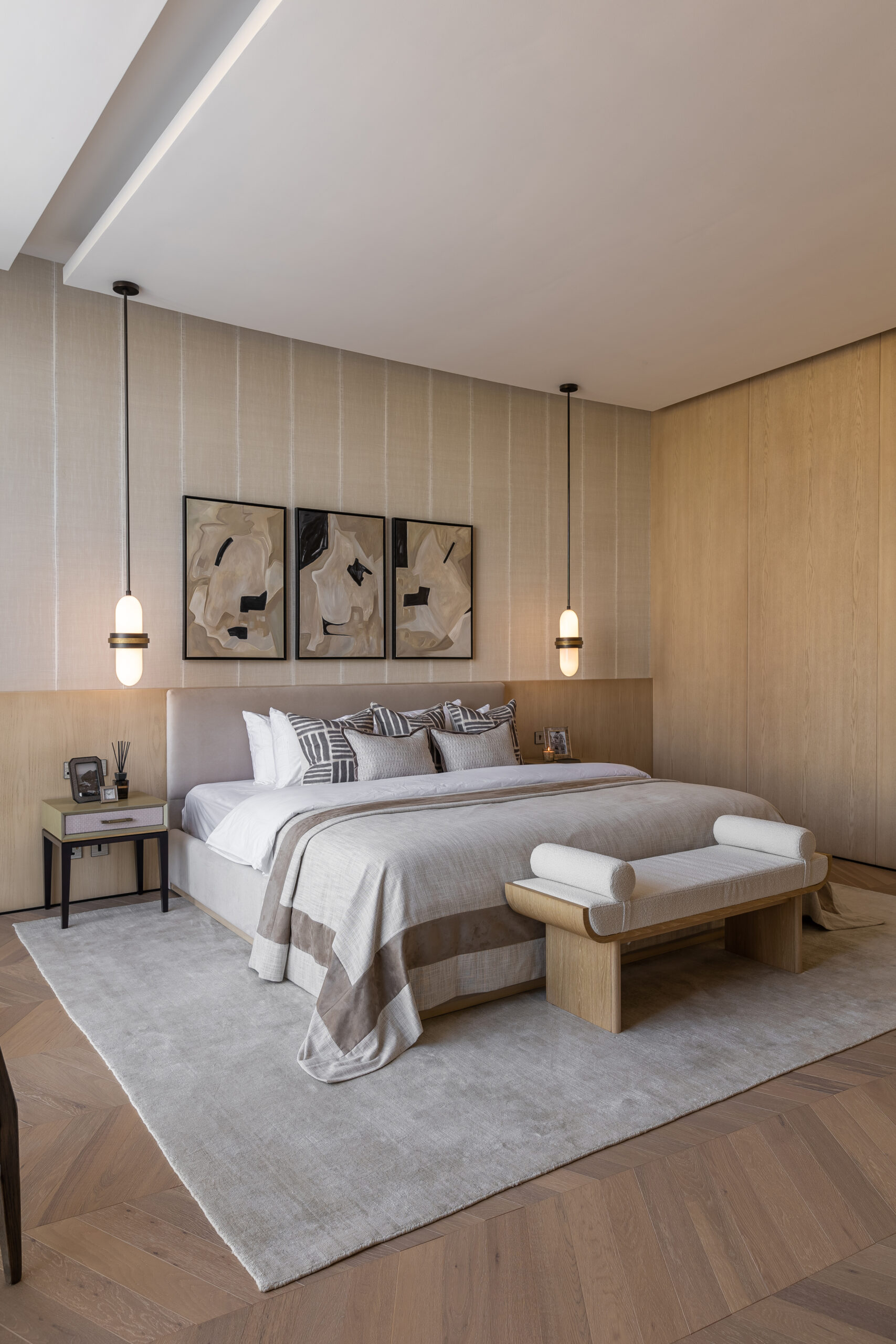 The result is a farm villa that feels intrinsically connected to its setting, embodying organic character and earthy elegance without compromising the gentle sophistication synonymous with Buthaina Humaidy Interiors.
