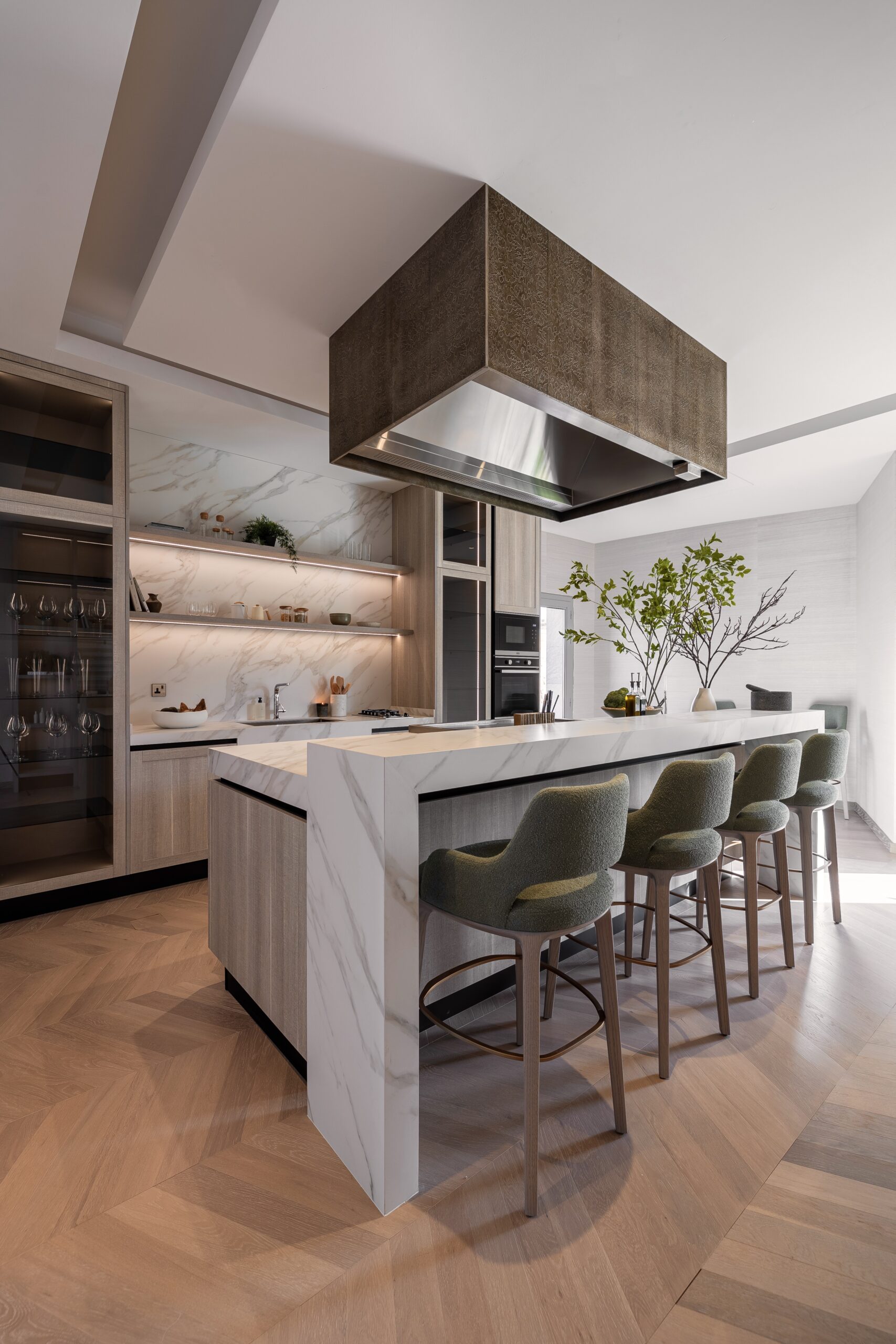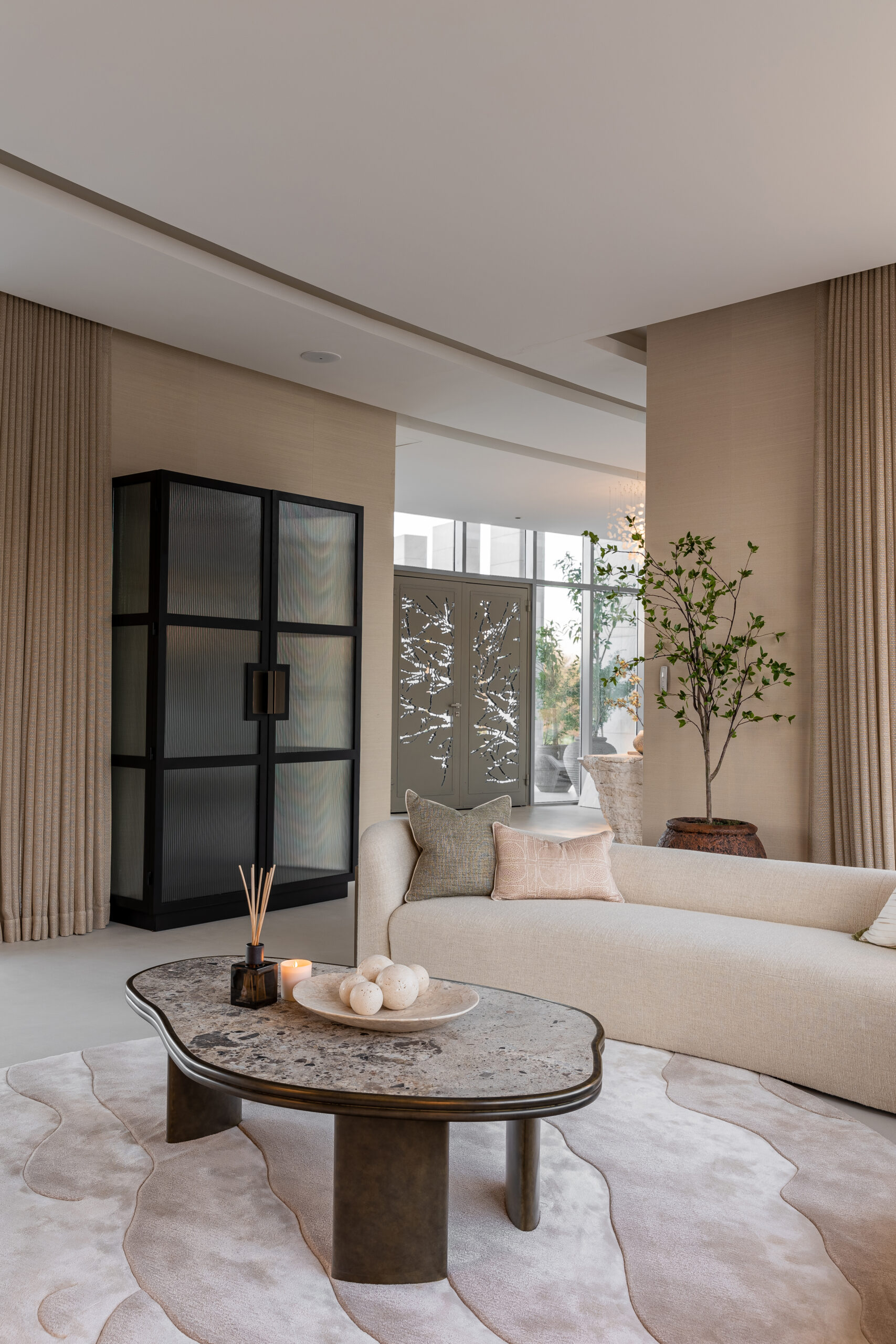 The result is a farm villa that feels intrinsically connected to its setting, embodying organic character and earthy elegance without compromising the gentle sophistication synonymous with Buthaina Humaidy Interiors.