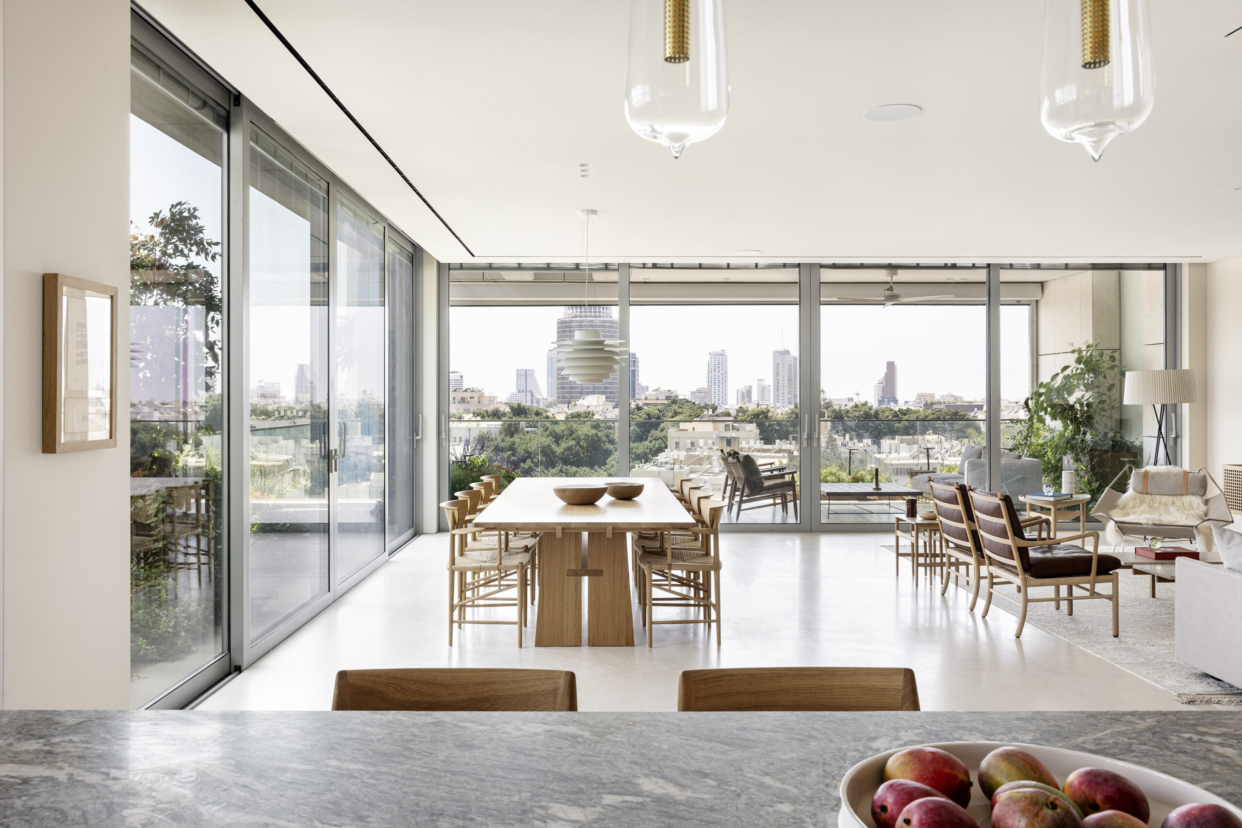Walls and ceilings are finished in warm Benjamin Moore tones, replacing stark white with an enveloping softness. Integrated lighting, bespoke furniture, works by local artists and generous terraces blur the boundary between interior and exterior, city and retreat. The project reflects Dalit Geffen’s belief that true luxury lies in restraint, craftsmanship, material honesty and spaces that quietly support everyday life.