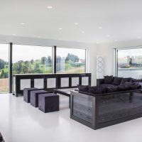 Due to a system developed by Luis Design, the clients have the option to combine each piece of furniture with semiprecious stones, metal, wood, glass, leather and fabric, based on their own personal preferences. Luis Design have even made it possible to change the combination of materials at a later date, offering the most adaptable and convenient décor. This also means that the clients receive unique pieces that are completely tailormade based on their exclusive input and needs. The property benefits from floor to ceiling windows, which fill and reflect the rooms in natural light due to the reflective stone materials used.