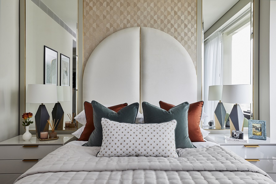 To reflect the surrounding area, it was important the rich history of the area and architecture were to be reflected in Vesta’s designs. In 1951 London’s Southbank hosted the Festival of Britain, a celebration of peace and modernity in post war Britain. The renowned British Architect Hugh Casson, was the Director of the event, giving Casson Square its name. To celebrate and honour this Vesta wanted to introduce key subtle themes of geometric forms, artisan textures and design influences from the 1950s. Vesta used a tonal jewel colour palette combined with soft neutrals to create an elegant and sophisticated narrative throughout the apartment, whilst still making it homely and inviting.