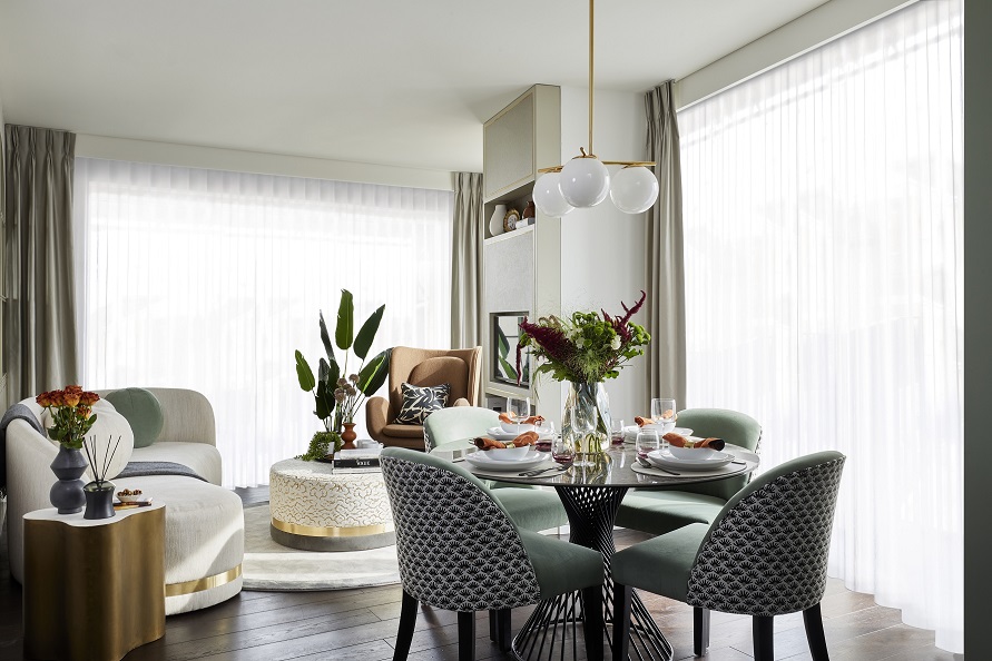 The show home needed to be inspirational and memorable, whilst reflecting the luxury, heritage, and cultural elements of London’s Southbank. The design would be elegant and classic, whilst also capturing the imagination of the international buyers drawn to the vibrant area. The apartment was to be designed for a professional couple who love the arts and culture. They work in the city but are looking for a comforting sanctuary they can retire home to, where they can also enjoy the local area and its vibrant and artistic lifestyle.