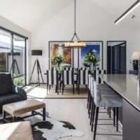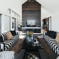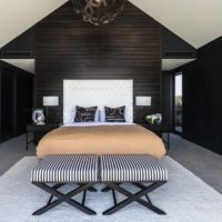 To achieve this, they featured throughout the design the use of natural materials with solid oak, blue gun steel frames, natural aged leathers mixed with beautiful camel velvets, classic stripe textiles, beaten steel table lamps and large scale furniture pieces to set off the large pitched roofline. To accentuate the large stud height they also used large pendant lighting which was also in-keeping with the architecture. Trenzseater also used wallpapers in specific areas to give detail and pattern to small spaces with the use of large mirrors to give an optical illusion.