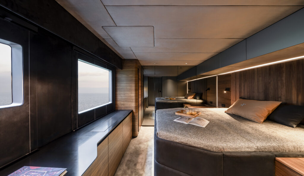 Outdoor spaces are equally impressive, with a flybridge offering abundant room for customisation, a spacious bow terrace, and sunken lounging areas with plush sun pads. Alfresco living is encouraged through expansive exterior areas that minimise structural intrusion, allowing guests to immerse themselves in nature while enjoying luxurious amenities.