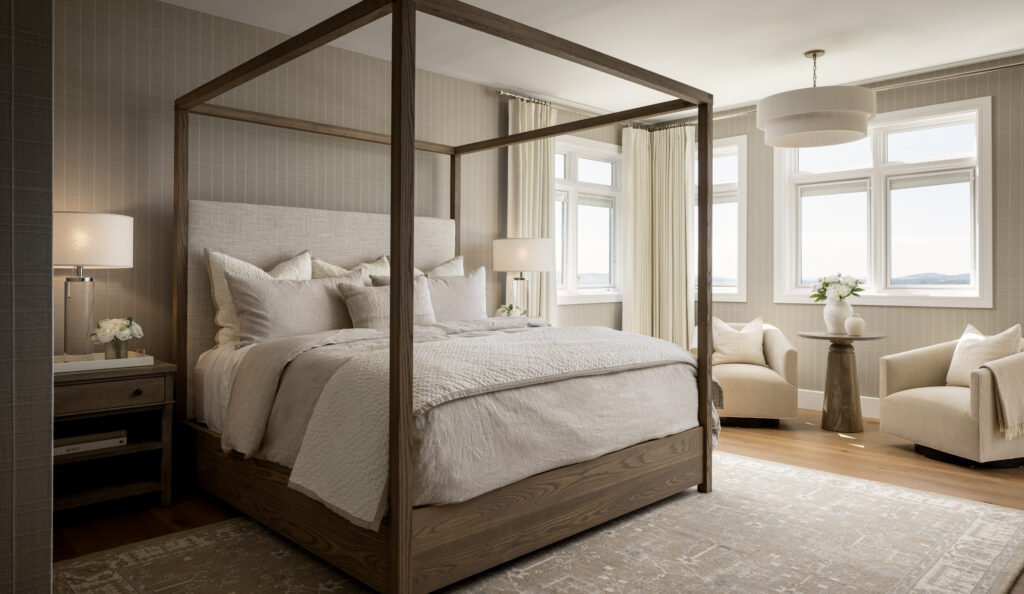 All new furniture was selected to suit the updated interiors, reinforcing the cohesive and luxurious feel. The project involved collaboration with a full team of trades including contractors, cabinet makers, millworkers, electricians, tilers, framers, drywallers, plumbers, painters, wallpaper installers, drapery consultants and movers.