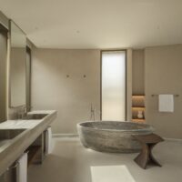 With an emphasis on all-natural materials, the Villas exude warmth and authenticity. Stone-carved details echo the region’s heritage while elevating luxury hospitality to a new standard. Merging into the silence of the desert rather than disrupting it, Delfina Design creates a space where architecture, landscape, and tradition exist in perfect balance.