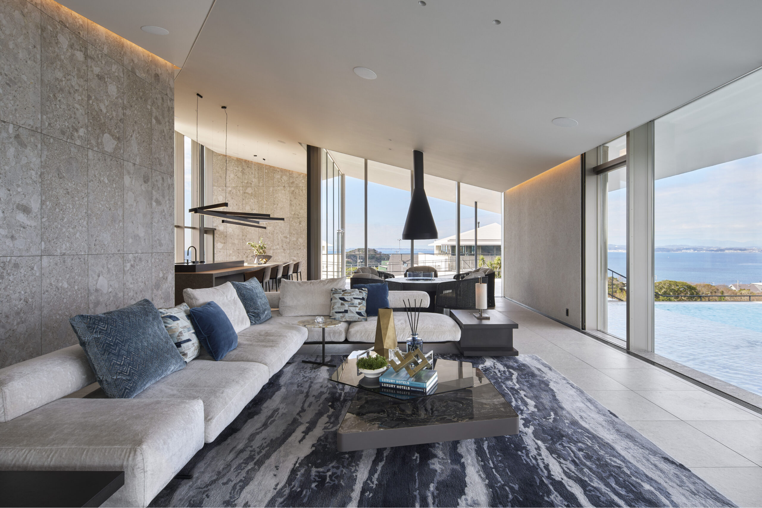 EY DESIGN has completed a luxury residential project in Chiba that reimagines a former quarry as an immersive hilltop retreat where architecture and interiors work together to deepen the connection to the surrounding landscape. Located around one hour from central Tokyo, the villa occupies an elevated site with sweeping views across Tokyo Bay and distant mountain ridgelines, offering a powerful sense of place shaped by the land itself.