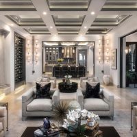 A great deal of indirect lighting in coves and toe kicks were incorporated to ensure the home would glow beautiful. This adds to the dramatic and high contrast focal points that really make the design standout. While the exterior of the house is a traditional and formal Northern Italian style, the interior is a more contemporary open floor plan designed for a modern lifestyle and aesthetic.  Classic details were incorporated into the interior architecture to connect interior and exterior spaces.