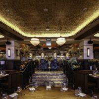 With the restaurant being perched 57 stories up on a rooftop that looks just like a spaceship, the challenge was how to make the space feel like it had the richness of a bistro that had been there for 100 years, but didn’t feel out of place in a location that was so modern. Another challenge was to design a beautiful restaurant that could switch to a vibrant nightlife lounge at the flick of a switch.