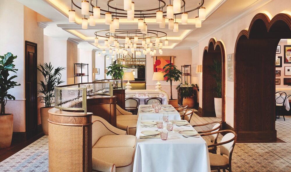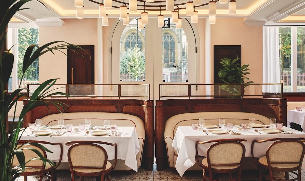 One of the standout features is a bespoke chandelier that reinterprets traditional design in a contemporary way, paying homage to the building’s legacy as the first hotel in London to feature electric lighting. Other key elements include ceramic tiling and rich textures that reflect Istanbul’s heritage, while remaining firmly rooted in London’s modern dining scene.