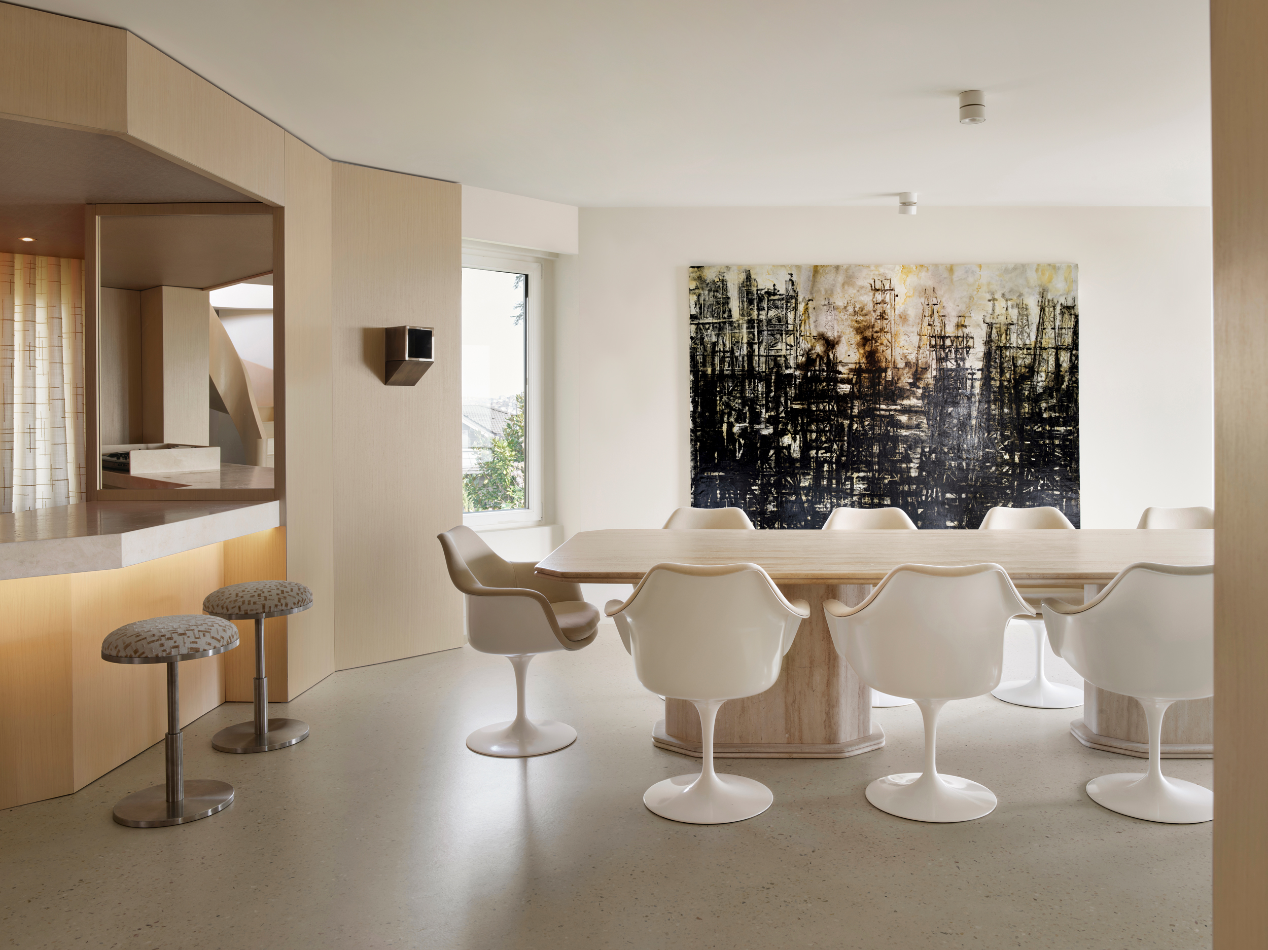 Art serves as an essential element throughout the home, carefully curated to enrich the spatial composition and deepen the project’s conceptual narrative. Each artwork is selected not merely for aesthetic value but for its capacity to interact meaningfully with the interior architecture, reinforcing the dialogue between past inspirations and contemporary living.