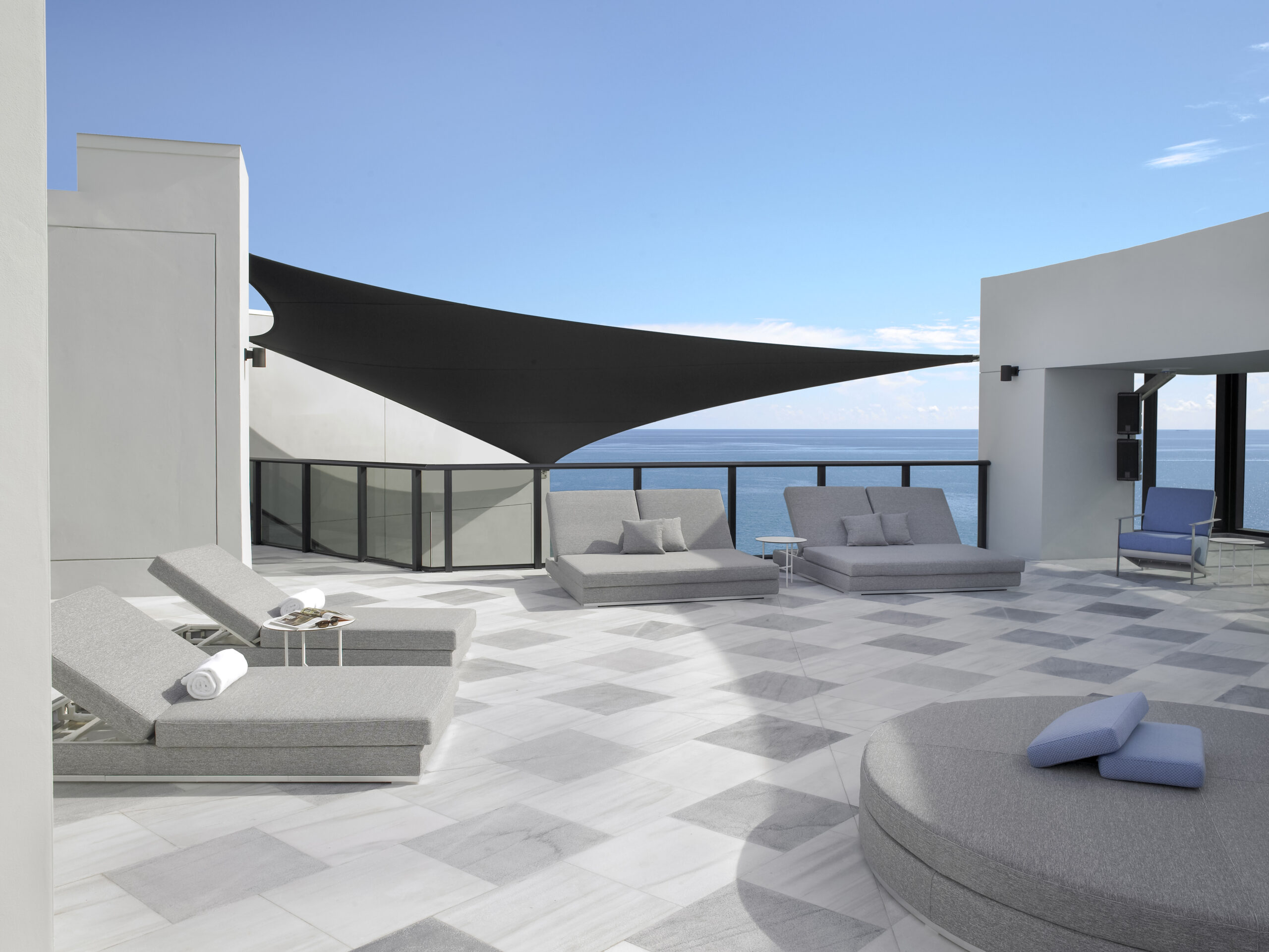 Michael Wolk Design was commissioned to conceive and deliver interiors that would enhance the panoramic ocean views while adhering to a demanding, accelerated timeline. The firm successfully achieved this without compromising the exacting standards of craftsmanship and quality required by the client. Across all four levels, the design maintains an uninterrupted connection to the sky, beach, and Atlantic Ocean through expansive floor-to-ceiling glazing, open sightlines, and carefully layered spatial planning.