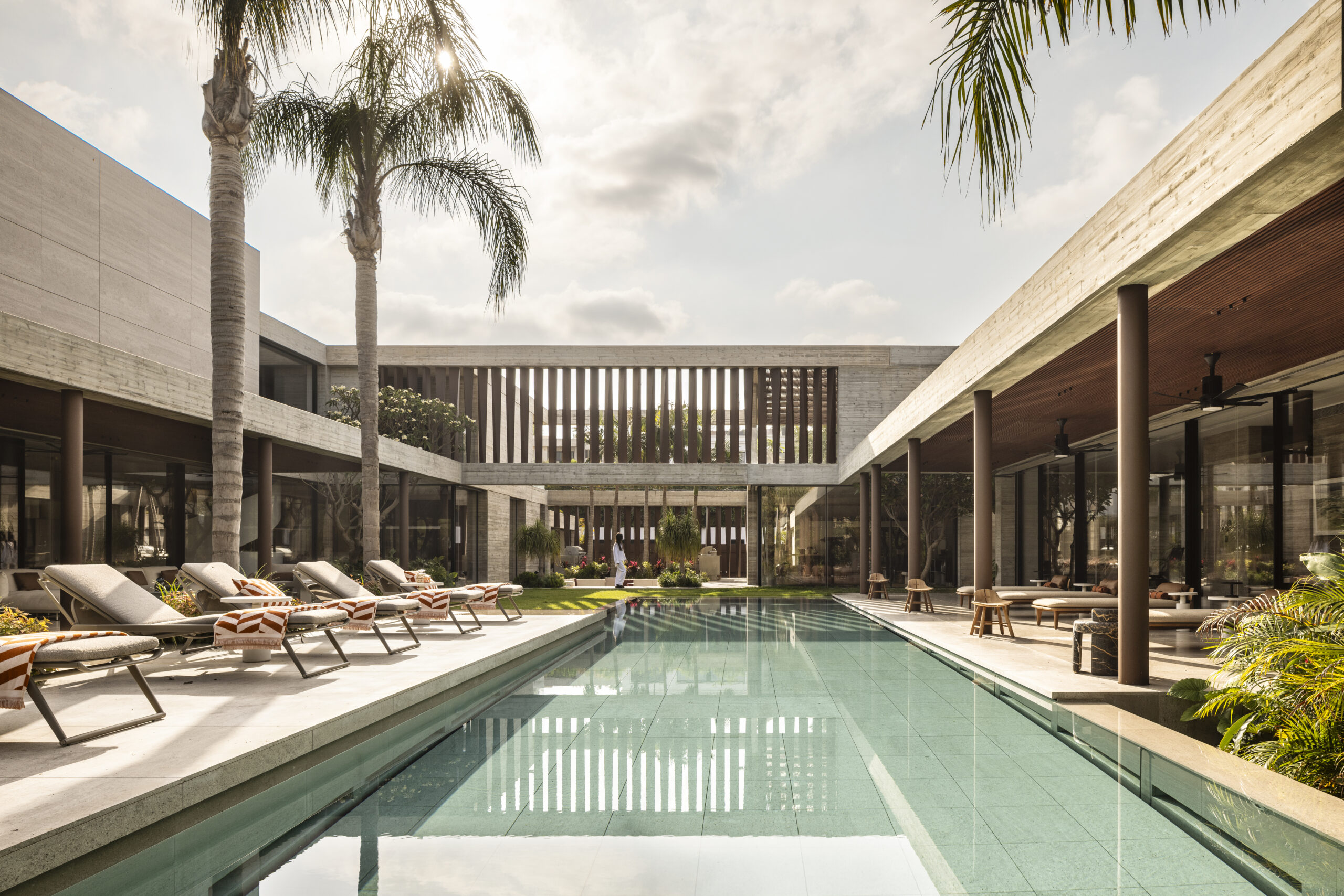 Oberson Architects’ Resort Villa is a dual-structured family home designed to capture the atmosphere of a luxury resort within everyday living. The project unites two adjoining plots into a single multigenerational retreat, balancing openness with privacy. Rather than dividing the land, the architects connected the properties through a central courtyard, with an outdoor pool and terraces forming the focal point. The design merges resort-style relaxation with the functionality of family life, using long sightlines and framed views to create visual openness while maintaining personal privacy.