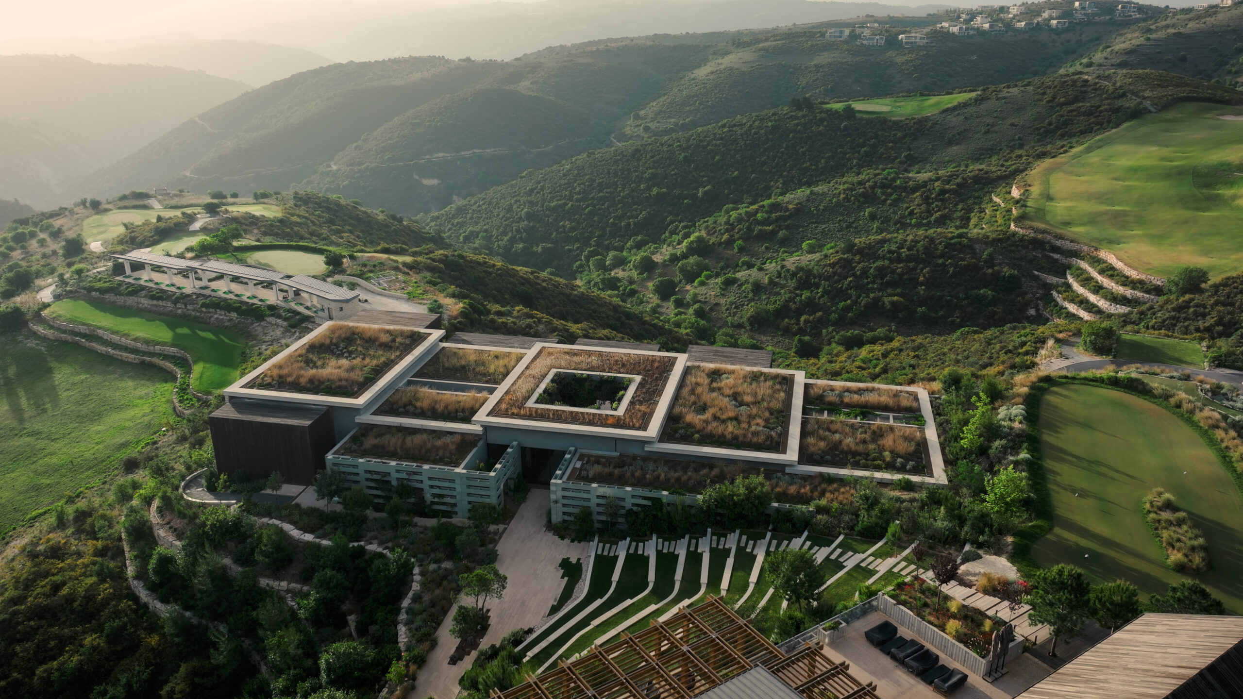 Minthis is presented as an architecturally unified and sustainable retreat developed by Pafilia Property Developers. Its design is shaped by a landscape-led masterplan that spans five million square metres, with only five percent of the terrain developed. This careful approach allows the resort to sit quietly within its natural topography, maintaining tranquillity and preserving the heritage of its elevated setting 550 metres above sea level.