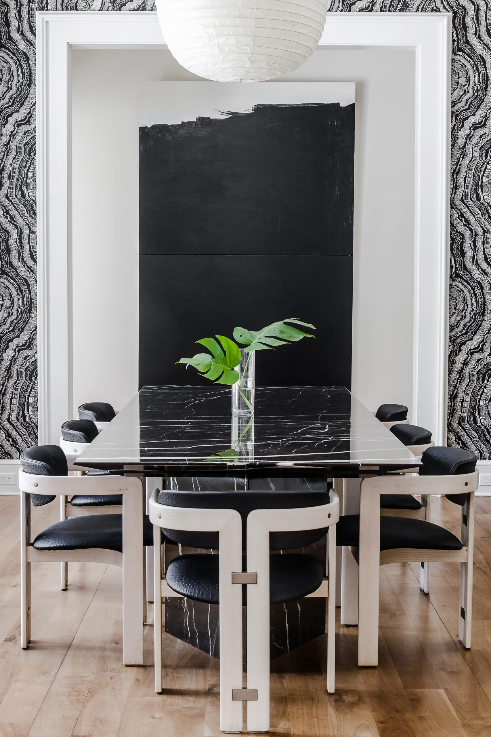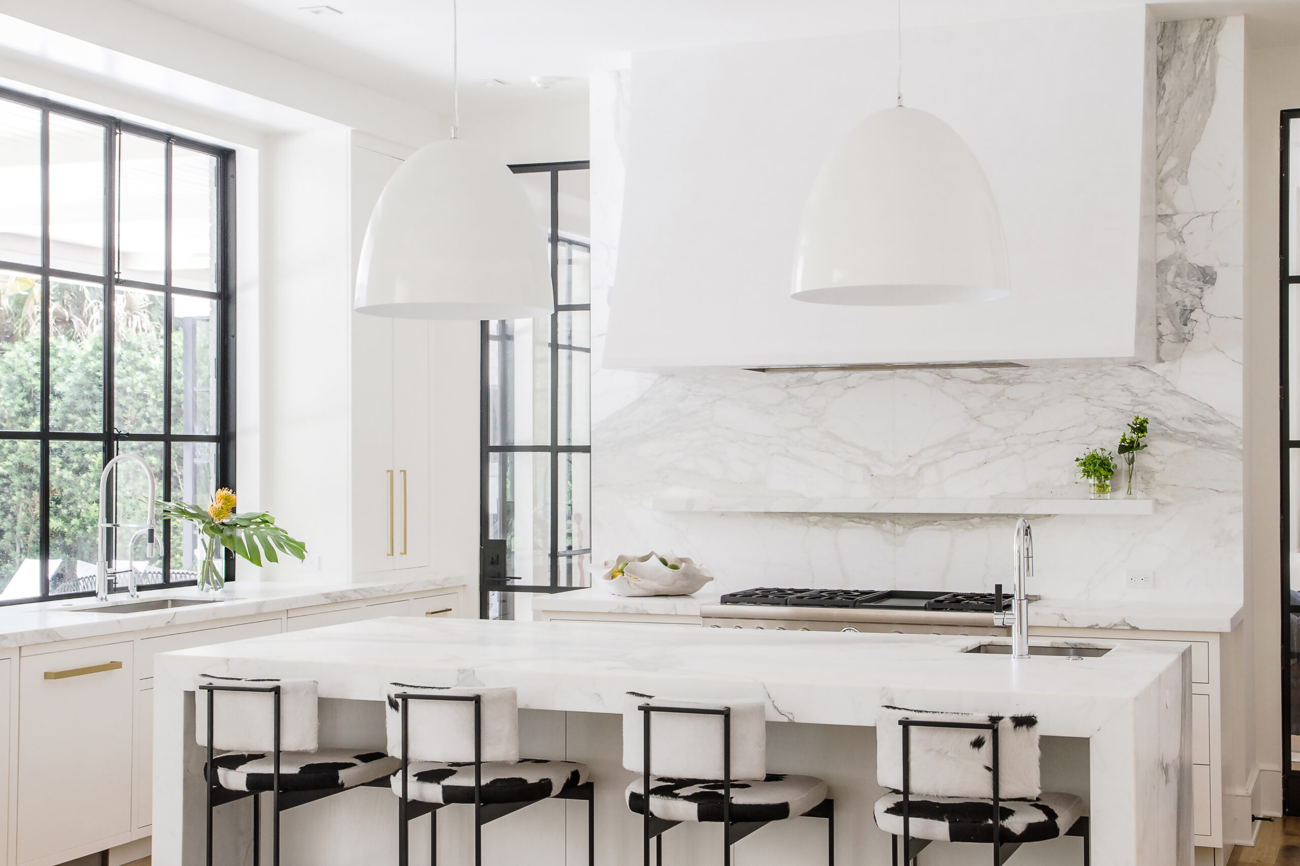 To balance the strength of steel and glass, the interiors incorporate soft white marble and Venetian plaster, providing a refined and timeless backdrop for the client’s avant-garde art collection. This careful material juxtaposition underscores the project’s central theme: the harmonious marriage of enduring architecture with progressive, forward-thinking elements.